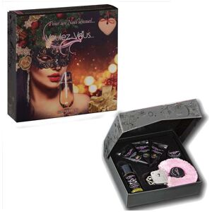 Ce Coffret de Massage Noël Avec Menottes signé Voulez-Vous... inclus 7 produits de massage pour un Noël sensuel ! C'est le coffret cadeau idéal pour jouer avec vos sens et ceux de votre partenaire. Cette boîte contient l'essentiel pour atteindre les hauteurs de l'érotisme ! La marque Voulez-Vous... propose 13 parfums très originaux. Le Coffret de Massage Noël contient : * 3 Berlingots d'huiles corporelles chauffantes "Huile de la tentation", ces berlingots (10 ml) se dégustent tendrement sur le corps de votre partenaire. Si vous soufflez délicatement dessus, une douce sensation de chaleur va s'emparer des zones effleurées. Parfums : Noix de Coco, Crème Brûlée et Fraise Pétillante. * 2 Poudres gourmandes "Chute de neige", ces poudres (4 g) sont à saupoudrer délicatement sur le corps de votre partenaire pour qu'une sensation de gourmandise vous envahisse lorsque vous léchez sa peau ! Parfums : Bubble Gum et Piña Colada.. * 1 Huile de Massage "Passage sous tes reins" Désir, cette huile de massage (25 ml) stimulera le plaisir. Parfum : Vanille. * 1 Paire de menottes. Les produits Voulez-Vous... sont 100 % Made in France et sans parabène. Vendu dans sa superbe boîte chic ce Coffret de Massage Noël est le cadeau idéal pour un Noël sous le signe de la sensualité ! Attention certains goûts de produit dans les coffrets peuvent être exceptionnellement modifiés en cas de rupture de stock.