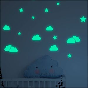 Des stickers phosphorescent VERT pour votre déco ! Avec les stickers muraux phosphorescent VERT et ce Pack de 9 stickers nuages et 18 étoiles phosphorescentes, vous pourrez enfin décorer l'intérieur de votre chambre à votre guise ! Ce sticker phosphorescent doit être exposé à la lumière pendant 1h
