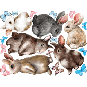 Des stickers animaux pour votre déco ! Avec les stickers muraux animaux multicolore et ce Stickers lapins et papillons des forêts, vous vous approprierez enfin votre intérieur ! Dimension du sticker : Une planche de 30 x 40 cm, le papillon rose en bas à gauche mesure 5,7 x 5,3 cm et le lapin brun f