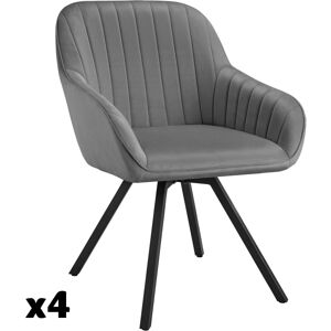 Tectake Lot 4 chaises pivotantes à 360° avec accoudoirs velours noires Noir 58x82x58cm
