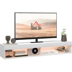 Description:Découvrez le meuble TV suspendu moderne et pratique avec rangement et éclairage de HOMCOM. Améliorez votre espace grâce à ses lumières LED avec 16 couleurs et 4 modes d'éclairage qui créent une jolie ambiance. Son design flottant optimise l'espace, ce qui le rend adapté aux espaces de vie compacts. Améliorez votre système de divertissement à domicile avec ce meuble multimédia HOMCOM.caractéristique:● La conception murale permet d'économiser de l'espace au sol; ● Bande lumineuse LED amovible avec changement de couleurs, de luminosité et de modes; ● Meuble de télévison avec télécommande incluse pour plus de commodité; ● La partie supérieure de 180 cm peut accueillir des téléviseurs jusqu'à 75 pouces; ● Deux compartiments ouverts avec deux trous pour les câbles à l'arrière; ● Meuble TV bas en MDF mélaminé et panneaux de particules faciles à nettoyer; ● Assemblage requis;Spécification:● Couleur : blanc; ● Matériaux : MDF, panneau de particules; ● Dimensions totales : 180L x 40l x 30H cm; ● Dim. de chaque compartiment : 87,5L x 38,5l x 27H cm; ● Charge max. : 20 kg (total), 5 kg (compartiment); ● Pile de la télécommande : Pile bouton CR2025 (incluse); ● LED : Tension d'entrée : 12V/50Hz, puissance : 10W; ● Adaptateur : Entrée : 120V/60Hz, sortie : 12V/1A/12W; ● Réf. : 839-910V90WT;contenu du colis:● 1 x Meuble TV; ● 1 x Télécommande; ● 4 x Vis d'expansion; ● 1 x Manuel;