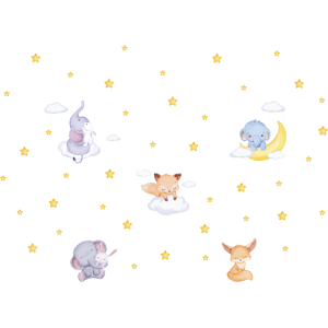 Des stickers animaux pour votre déco ! Avec les stickers muraux animaux multicolore et ce Stickers animaux veilleurs des étoiles, vous vous approprierez enfin votre intérieur ! Dimensions des stickers animaux : Ce sticker déco chambre enfant se compose de : 1 sticker éléphant avec un lapin, 1 stick