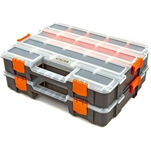 Vous êtes souvent en déplacement dans le cadre de votre travail pour effectuer toutes sortes de travaux ? Avec la mallette d'assortiment 2 pièces de 37,5 cm de Tactix, vous avez toujours les plus petits accessoires et fournitures à portée de main. Elle est idéale pour le stockage et le transport de petites pièces. Bien entendu, vous bénéficiez d'une excellente qualité. Ainsi, les vis et les boulons ne traînent jamais. Une mallette pratique pour les professionnels et les bricoleurs. Décidez vous-même des compartiments à l'aide des séparateurs réglables.