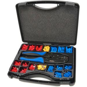 Ce set d'outils professionnels de sertissage de câbles de 552 pièces de HBM convient à un usage professionnel et privé. Ces pinces à sertir sont utilisées pour fixer les sabots de câble à l'extrémité d'un câble de manière professionnelle et surtout en toute sécurité. De cette manière, le câble peut être fixé en toute sécurité aux bornes à vis des boîtes à bornes, des prises de courant ou des boîtes de commutation, par exemple. Ces pinces conviennent aux embouts isolés et non isolés. Les pinces à sertir pour câbles HBM ont une poignée antidérapante, de sorte qu'elles reposent fermement dans la main. Le jeu est livré avec une boîte de rangement pratique contenant 550 cosses ou embouts de câbles avec un code couleur DIN.