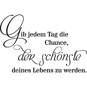 Des stickers muraux citations pour la déco ! Avec les stickers citation et ce Sticker citation Gib jedem Tag die Chance, vous pourrez enfin décorer l'intérieur de votre cuisine à votre guise avec leur aide ! Choisissez la mode, la classe et l'élégance comme thème de décoration dans votre maison ave