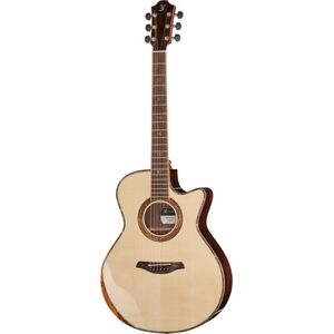 "Furch Red Deluxe Gc-LR w/SPA a, Guitare électro-acoustique, Forme Grand Auditorium avec pan coupé, Double biseau ergonomique (biseau sur la table et le fond pour une manipulation plus facile lors du jeu), Filets de touche et de tête en koa avec lignes de contraste blanches, Rosace avec anneau en koa massif/ormeau, Fond et éclisses en palissandre des Indes orientales massif Master Grade, Table en épicéa massif, Manche en acajou, Touche en ziricote flammé, Repères ""chiffres romains"" et ""lignes latérales"" en nacre, Diapason: 650 mm (25,6""), Largeur au sillet: 45 mm (1,77""), 20 frettes, Chevalet en ziricote flammé, Filet en koa avec ligne de contraste blanche et en ormeau avec lignes de contraste noire/blanche, Chevilles en ébène avec incrustations en nacre, Truss Rod CNR, Pickguard transparent, Mécaniques Gotoh 510 Silver Patina avec boutons en ébène, Système de micro L.R. Baggs Stagepro Anthem, Cordes .012-.053, Couleur: Naturel haute brillance, Etui rigide Hiscox incl., Fabriquée en République tchèque"