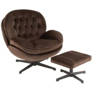 Le fauteuil relax LOUNGE est un véritable appel à la détente. Son assise et dossier sont parfaitement rembourrés pour un confort incontestable. En tissu aspect peau de pêche marron foncé, le dossier capitonné apporte beaucoup de caractère à ce fauteuil.Proposé avec son repose-pied assorti, il sera l'allié de vos moments de lecture.Tous deux reposent sur un piétement métal noir en croix pour garantir une grande stabilité. Description technique : Dimensions colis : L 83 x P 88 x H 84 cmHauteur d'assise : 45.30 cmFauteuil fixe livré avec son repose-piedsMatières : Métal, velours Poids : 19 Kg