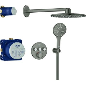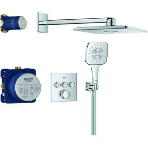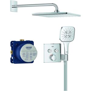 Grohe Grohtherm Smartcontrol système de douche encastré 34742000 composé d'un thermostat à encastrer avec 2 robinets d'arrêt et support de douche intégré Kit de montage final Grohtherm SmartControl (29 125 000) Boîte intelligente Rapido (35 600) Ensemble de douche de tête Rainshower F-Series 10" 28 6 cm Douchette à main Power&Soul C 115 (27 661) Flexible de douche Silverflex 125 cm (28 362)