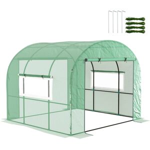 Description:Découvrez la serre de jardin Outsunny de 300 x 300 cm, idéale pour les petits espaces. Modulable, vous pouvez y ajouter des étagères pour organisation. Portes zippées, fenêtres en maille pour ventilation, et un cadre en acier avec housse protectrice contre les intempéries. Inclus piquets de terre et cordes pour stabilité.caractéristique:● Cette serre de jardin tunnel est dotée de portes enroulables et de fenêtres en maille : accès intérieur et permettent l'entrée d'air frais; ● Cadre en acier, avec sommet arqué pour réduire les affaissements; ● Couverture en plastique à trois couches de la serre tunnel de jardin pour protéger. Grille de renforcement médiane pour une durabilité accrue; ● Bords de couverture prolongés à enterrer dans le sol. Piquets de terre et cordes de tension pour une stabilité supplémentaire; ● Deux personnes recommandées pour le montage;Spécification:● Couleur : vert; ● Matériaux : acier, polyéthylène; ● Dim. totales : 300L x 300l x 200H cm; ● Dim. de la porte : 180l x 170H cm; ● Dim. de la fenêtre latérale : 125l x 50H cm; ● Largeur de la bordure : 10 cm; ● Coupe-vent : niveau 4 (vitesse du vent inférieure à 17,5 mph); ● Réf. : 845-958V02GN;contenu du colis:● 1 x Serre de Jardin; ● 4 x Piquet de Sol; ● 4 x Corde de Tension;