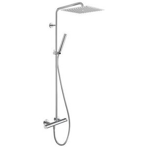 Colonne de douche thermostatique complète avec mélangeur chromé CRISTINA ONDYNA : avec pomme de douche carré 30 x 30 Les + Colonne de douche mélangeur. Pomme de douche carré en inox dimension 30 x 30 cm . Douchette tube monojet. Inverseur sur la poignée . Cartouche Vernet . Tube recoupable flexible Long Life 150 cm . Hauteur 1230 mm . Entraxe 150 / 15 mm . Garantie 8 ans. Pour une douche dans une salle de bain : la colonne thermostatique de Cristina Ondyna vous offre la possibilité de profiter de deux sortes de jets avec un mélangeur pratique permettant de régler la température de l'eau . Installation fonctionnelle.