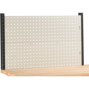 Panneau porte-outils longueur 2000 mm tout équipé avec : > 1 lot de 30 crochets porte-outils multifonctions > 2 rails porte-bacs > 8 bacs à becs plastique bleu (4 bacs volume 1 litre / 4 bac volume 0.25 L) > Coloris gris RAL 7035+7016. Utilisations Ce panneau perforé est prévu pour l'établi professionnel Alpa 40 avec plateau de 2 mètres. Le panneau s'adapte également sur de nombreux plateaux de travail grâce
