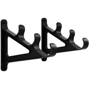 Un lot de deux supports en plastique durable haut de gamme. Ils sont conçus pour accommoder au moins 3 cannes et des crochets ont une forme spéciale pour tenir vos cannes à leur place. Chaque support a deux ouvertures pour l'attacher au mur ou au panneau perforé. Le produit contient 5 chevilles et vis, alors il vous faut seulement une perceuse et un tournevis pour commencer l'installation. C'est un outil pratique pour placer vos cannes par exemple dans votre garage ou votre salle de pêche. Informations techniques: Dimensions : 20,5x17 cm