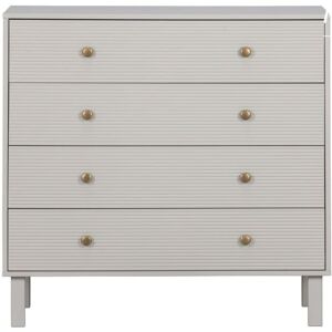 L'élégance de la simplicité. Madu est une commode élégante et pratique qui apportera une touche de modernité à votre intérieur. Fabriquée en pin avec une finition gris nuage, elle est à la fois intemporelle et tendance. Les boutons dorés ajoutent une touche de sophistication et de robustesse à l'ensemble. Avec ses quatre tiroirs spacieux, Madu offre beaucoup d'espace de rangement pour vos vêtements, votre linge de maison ou vos accessoires. Les tiroirs ont une largeur de 86 cm et une profondeur de 38 cm, de quoi stocker tout ce dont vous avez besoin. Les pieds de la commode sont équipés de patins en feutre pour protéger votre sol.