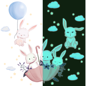 Des stickers phosphorescents animaux pour votre déco ! Avec les stickers phosphorescents muraux animaux multicolore et ce Stickers phosphorescents lapins jouant dans le ciel, vous vous approprierez enfin votre intérieur ! Dimensions du sticker phosphorescents : Ce sticker phosphorescent se compose