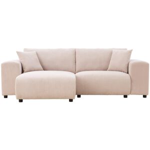 Canapé d'angle modulable 3 places en velours côtelé beige Un style affirmé, une modularité rassurante, un confort généreux : ce canapé 3 places en velours côtelé s’invite comme une pièce forte de votre intérieur. Grâce à son tissu au toucher doux et chaleureux, il réchauffe l’ambiance tout en structurant l’espace avec élégance. Son coloris, vert ou beige, s’accorde facilement à différents univers déco : des plus naturels aux plus contemporains. Conçu pour s’adapter à vos besoins, il se compose de deux modules indépendants que vous pouvez agencer selon vos envies. Installez la méridienne à gauche ou à droite, changez la configuration au fil des saisons ou de vos réaménagements : les accoudoirs amovibles vous offrent une liberté précieuse dans votre quotidien. Sous son allure généreuse, il cache une structure robuste en bois massif et une assise soigneusement pensée. L’association de mousses de différentes densités assure un confort mi-ferme idéal pour lire, se détendre ou partager un moment en famille. Deux coussins assortis complètent l’ensemble pour une touche cosy supplémentaire. Parfait équilibre entre design et fonctionnalité, ce canapé s’intègre aussi bien dans un salon spacieux qu’un intérieur plus compact. Avec ses lignes enveloppantes, ses finitions soignées et sa modularité intuitive, il devient un véritable compagnon de vie, fait pour durer et évoluer à votre rythme. Caractéristiques techniques Nombre de places : 3 Couleur : Vert ou Beige Forme : Angle Méridienne : Droite et gauche Type : Modulable Densité : Mi-ferme Revêtement : Velours côtelé Avec coussins : Oui, 2 coussins Structure : Bois massif d'eucalyptus et panneaux de particules Piètement : Bois massif d'hévéa Garnissage : Double épaisseur mousse haute densité 50 kg/m3 et 25 kg/m3 + ouate 150 g/m2 Suspensions assise : Ressorts Suspensions dossier : Sangles élastiques Nombre de pieds : 8 Accoudoirs : Amovibles Coussins déhoussables : Non Coussin décoratif non inclus Entretien Pour préserver la bea