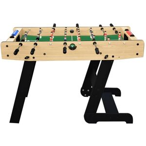 Description : Le baby foot pliable rend un rêve accessible !A vous le baby foot que vous désirez tant depuis des années mais dont vous vous privez faute de place. Il mesure 121 x 61 x 79 cm mais en quelques gestes il bascule et se fait tout petit. Malin !Le tapis de jeu et la caisse en bois sont robustes. Les barres en acier chromé sont sortantes et donc complètement sécurisées. Quant aux 22 joueurs ils sont en plastique, résistants, et prêts à endurer quelques bousculades. Mais attention au carton rouge !Ce baby foot pliable est livré avec 2 balles.A partir de 10 ans. Dimensions:Longueur : 121cm / largeur : 61cm / Hauteur : 79cm Matériaux:Caisse en MDFBarres en acier chromé télescopiquesJoueurs en plastique Entretien:Passer un coup d'aspirateur sur la surface de jeu du baby foot pour enlever les poussières et les impuretés. Si le tapis est tâché, utiliser un chiffon et un produit d'entretien. Les barres peuvent être huilées pour une meilleure glisse. Vérifier de temps en temps le serrage des vis.Dimensions : - Longueur : 121 cm - Largeur : 61 cm - Hauteur : 79 cmContenu : Le baby foot pliable comporte 22 joueurs et est livré avec 2 balles, En quelques gestes la surface de jeu bascule et se range ainsi plus facilement., , Infos complémentaires : Dimension terrain : 105 x 58 cmBaby foot plié : 44cm x 61cm x 159cmPoids produit : 20kgEntretien : Passer un coup d'aspirateur sur la surface de jeu du baby foot pour enlever les poussières et les impuretés. Si le tapis est tâché, utiliser un chiffon et un produit d'entretien. Les barres télescopiques peuvent être huilées pour une meilleure glisse. Vérifier de temps en temps le serrage des vis., , Information colis : 125,5 x 65,5 x 12 cm