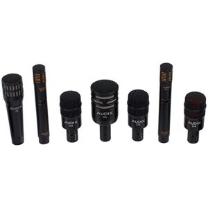 Audix DP7, Ensemble de microphones pour batterie, 1x D6 - Micro de grosse caisse, 1x D4 - Micro pour grosse caisse ou Stand tom, 2x D2 - Micros de toms, 1x I5 - Micro de caisse claire, 2x ADX51 - Micros Overhead/Hi-Hat, 4x pinces montées sur cols de cygne D-Vice et mallette fournies