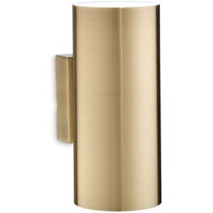Jolie applique cylindrique de 18 cm de haut en laiton bruni qui propose un double éclairage dirigé vers le haut et vers le bas. Avec son design épuré et sa lumière indirecte, elle crée une ambiance chaleureuse et sophistiquée. Prévu pour l'intérieur, ce petit luminaire mural apporte une touche chic dans toutes les décorations. Ampoules GU10 incluses. Applique murale lumineuse couleur laiton bruni avec 2 ampoules GU10 de 7W chacune incluses. Ce luminaire de salon diffuse un bel éclairage vers le haut et vers le bas. Pensez à cette délicate applique design pour éclairer un couloir ou pour mettre en valeur un salon contemporain. Socle de fixation étroit : vérifier les dimensions de votre sortie électrique (pas adapté pour les boitiers d'encastrement électriques déjà installés). Caractéristiques techniques de l' applique cylindrique Look : Hauteur : 18 cm Largeur : 8 cm Profondeur : 11 cm Socle de fixation : 3cm de large et 8 cm de long Applique murale double éclairage (haut et bas) en métal couleur laiton patiné. 2 ampoules incluses GU10 de 7W/610 lumen chacune en 3000K (couleur lumière chaud naturel) IP20/Classe I Garantie 5 ans
