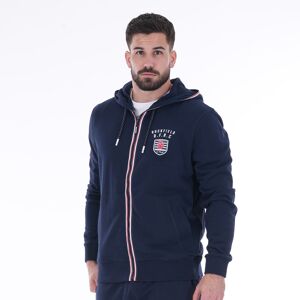 Reconnaissable au premier coup d'œil, portez les couleurs de la France avec ce sweat zippé à capuche French Rugby Club ! On retrouve une broderie au niveau de la poitrine et manche droite. Un basique pour vos looks du quotidien. Grandes tailles, disponible du S au 5XL.Notre mannequin mesure 1m82 et porte une taille L. - 80% coton organique non gratté, 20% polyester 280g- Broderie poitrine et manche droite- Capuche et cordon de serrage- Détails bleu, blanc, rouge au niveau de la fermeture éclair- Coloris bleu marine