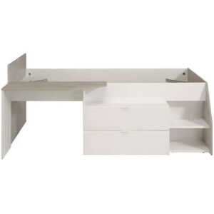 En un seul lit, profitez de toutes sortes de rangements : un bureau, un espace bibliothèque, 2 tiroirs façon commode, un espace de rangement sous le lit. Ses coloris sobres et tendances en font un lit mixte. De plus, ses découpes apportent encore plus de style à ce lit toutes fonctions.Caractéristiques Couleur (nuance) : Blanc, Naturel clair Matière : Panneau de particule Finition : Mélaminé Taille (couchage) : 90 x 190 cm, 90 x 200 cm Nombre de places : 1 place Sans matelas Sans sommier Avec bureau Type de rangement : 2 tiroirs Tiroir coulissant Gamme : Good for Planet Produit éco-responsable : Fabriqué en France À monter soi-même : 1 volume de rangement sous le lit : 2 tiroirs sur coulisses à galets : Finition : Mélaminée : Le lit est compatible avec tous les matelas et sommier 90x200cmDimensions Longueur : 203 cm Hauteur : 90 cm Profondeur : 135 cm : Bureau : L100 x P39 cm : Tiroirs : L75 x P35 cmLivraisonLors de la livraison, il est conseillé de vérifier que le bon nombre de colis a été livré.ColisColis n°1 : Longueur 208 cm, Largeur 41 cm, Hauteur 9 cm, Poids 38 kg, Colis n°2 : Longueur 138 cm, Largeur 102 cm, Hauteur 4 cm, Poids 24 kg,