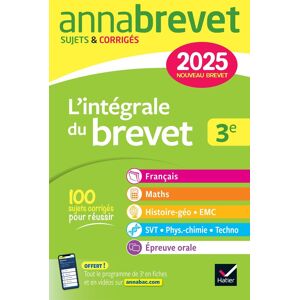 Binding : paperback, Label : Annales du brevet Annabrevet 2025 L'intégrale du Brevet 3e (tout-en-un) : toutes les matières des épreuves écrites et l'épreuve orale, Format : big_book, medium : paperback, numberOfPages : 384, publicationDate : 2024-08-27, languages : french, ISBN : 2401105603
