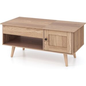 Attributs:Conception à Plateau Relevable : Soutenu par des tiges hydrauliques de haute qualité, le plateau de notre table basse peut être soulevé ou abaissé sans effort. Le processus de levage est fluide et silencieux, sans grincements gênants pour minimiser la perturbation de votre travail.Espace de Rangement Spacieux : L'espace sous le plateau relevable sert de compartiment de rangement caché pratique. Il y a également une armoire de rangement avec porte, une étagère ouverte et un espace de rangement arrière, ainsi qu'un plateau de table spacieux pour ranger vos affaires.Construction Robuste : Fabriquée en bois d'ingénierie robuste avec des pieds de soutien, notre table basse relevable offre une capacité de poids totale de 170 kg. Les pieds sont équipés de patins antidérapants pour plus de stabilité et de protection du sol.Utilisation Polyvalente : Avec sa conception convertible, cette table basse à plateau relevable peut également servir de table de bureau pour répondre aux besoins de votre vie quotidienne et de votre travail. Son design élégant complète les styles existants de votre salon, bureau à domicile ou salles de réception.Entretien Facile : Pour vous faire gagner du temps et des efforts, la surface de notre plateau relevable est facile à nettoyer avec un chiffon humide. La garde au sol de 16,5 cm est suffisante pour la plupart des robots aspirateurs, vous libérant ainsi des tracas liés à l'agenouillement et au balayage.Spécifications :Couleur : Marron rustique/Noir/NaturelMatériau : Bois d'ingénierie, MDFDimensions hors tout : 100 x 50 x 46 cm (L x l x H)Dimensions hors tout (levé) : 100 x 50 x 60 cm (L x l x H)Dimensions de l'espace caché : 57,5 x 45,5 x 13 cm (L x l x H)Dimensions de l'étagère ouverte : 57,5 x 48 x 14 cm (L x l x H)Dimensions intérieures de l'armoire : 37 x 37 x 27 cm (L x l x H)Espace libre entre l'étagère et le sol : 16,5 cmCapacité de charge du plateau relevable : 30 kgCapacité de charge du plateau de droite : 50 kgCapacité de charge du compartiment caché : 40 kgCapacité de charge de l'étagère : 30 kgCapacité de charge de l'armoire : 20 kgPoids net : 17 kg