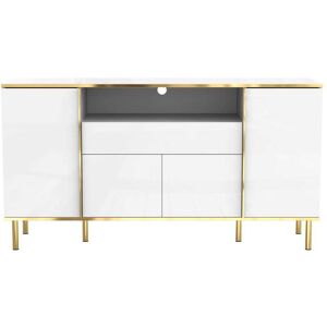 Urban Meuble Buffet moderne luxe blanc avec éclairage LED accents dorés brillant Blanc 150x80x40cm