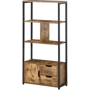 Description:Cette bibliothèque étagère de rangement est idéale pour installation dans votre salon, chambre, bureau, etc... Équipée de 3 étagères (dont une avec séparation), d'un placard porte, de 2 tiroirs coulissants, ce meuble vous offrira des espaces de rangement variés. Son style industriel décorera parfaitement votre intérieur en lui ajoutant une touche type loft New-yorkais.caractéristique:● Bibliothèque étagère style industriel mêlant originalité et élégance, idéale pour ajouter une touche type loft New-yorkais à votre intérieur; ● Jolie mixité des matériaux : aspect vieux bois et métal noir pour sublimer votre intérieur · Meuble utilisable comme petit séparateur de pièce; ● 3 étagères spacieuses (dont une avec séparation), placard porte et 2 tiroirs coulissants pour optimiser votre rangement (idéal pour ranger vos livres, CD, Blu-ray, équipement audio, décorations); ● Matériaux de qualité, usage pérenne : châssis en acier robuste, étagères, placard et tiroirs en panneaux de particules classe E1 (charge max. reco. de 30 Kg); ● Montage facile et rapide grâce au manuel d'assemblage illustré fourniSpécification:● Couleurs : noir, aspect vieux bois; ● Matériaux principaux : panneaux de particules classe E1, châssis acier; ● Dim. totales : 58L x 24l x 122H cm; ● Dim. grandes étagères : 58L x 24l x 28H cm; ● Dim. petites étagères séparées : 25,5L x 24l x 28H cm; ● Dim. rangement placard : 27,5L x 20l x 23,4H cm; ● Dim. rangement tiroirs : 22L x 25,5l x 14,8 H cm; ● Charge max. recommandée : 30 Kg (au total), 5 Kg (par étagère), 2 Kg (par tiroir); ● Livraison effectuée en un coliscontenu du colis: - Étagère de rangement; - Manuel d'assemblage