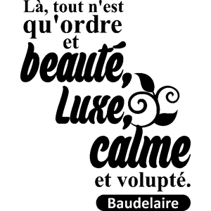 Des stickers muraux citations pour la déco ! Avec les stickers citation et ce sticker Là, tout n'est qu'ordre et beauté luxe, calme et volupté - Baudelaire, vous pourrez enfin décorer l'intérieur de votre cuisine à votre guise avec leur aide ! Avec ce sticker Là, tout n'est qu'ordre et beauté luxe,