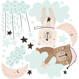 Des stickers enfants pour votre déco ! Avec les stickers muraux enfants et ce Stickers animaux scandinaves oursons dans les étoiles, vous vous approprierez enfin votre intérieur ! Dimension du sticker: Une planche de 20 x 20 cm, l’ourse couché sur son nuage mesure 10 x 12 cm et l’ourse assis sur so