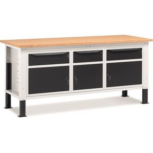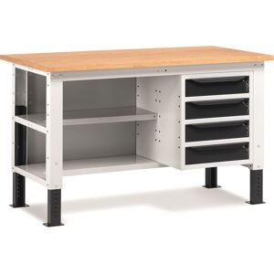 Etabli métallique Fortis n°2 avec plateau bois en multipli hêtre épaisseur 30 mm Structure fabriquée en tôle d’acier de première qualité Plateau supportant une charge de 1000 kg (C.U.R) > Pieds réglables en hauteur de 732 à 1107 mm (au pas de vis de 25 mm) > 1 bloc 4 tiroirs H.105 mm (dim.utile H.92 mm), extension simple à 86% - Dim. hors-tout bloc : L.500*P.607*H.570 mm - Charge maxi par tiroir : 25 kg > 1