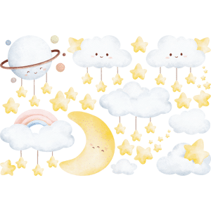 Des stickers enfants pour votre déco ! Avec les stickers muraux enfants et ce Sticker Étoiles nuages et la lune, vous pourrez enfin décorer l'intérieur de la chambre de vos enfants à votre guise avec leur aide ! Rayonnez votre mur pour avoir une allure raffinée et ludique avec ce sticker Monde merv