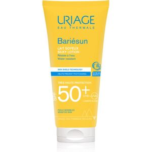 Uriage Bariésun Silky Lotion SPF 50+, 100 ml, Protection contre le rayonnement solaire pour femme, Protégez votre peau des coups de soleil, du vieillissement prématuré et des autres dommages provoqués par les rayons solaires. Le produit solaire Uriage Bariésun Silky Lotion SPF 50+ crée un écran efficace qui protège la peau des rayons UV, empêchant ainsi l’apparition des coups de soleil et des taches pigmentaires. Il prévient également la perte d’élasticité, la perte de collagène et les autres symptômes du vieillissement cutané. De plus, il réduit considérablement le risque de cancer de la peau. Le produit : s’absorbe facilement le produit n’est pas comédogène protège la peau contre les rayons UVA et UVB Mode d’emploi : Appliquez une quantité suffisante sur la peau de votre corps avant de vous exposer au soleil. Répétez au besoin, surtout après la baignade, après vous être séché avec une serviette ou lorsque vous avez fortement transpiré.
