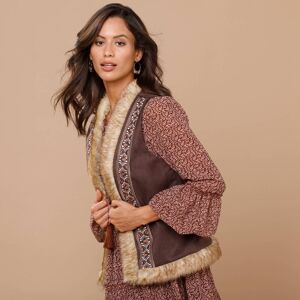 Veste brodée imprimée sans manches - 40 - Bleu - Lora ZelliniJouez la carte de la décontraction bohème avec cette veste droite sans manches en suédine, agrémentée de fausse fourrure. A porter sur un col roulé ajusté ou une chemise, avec manches bouffantes