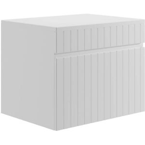 Vous aspirez à une salle de bain à la fois unique et fonctionnelle ? Découvrez notre meuble de salle de bain SATARA, une pièce distinctive qui apportera une touche contemporaine et sublimera votre intérieur. Ce meuble strié allie design et élégance grâce à sa teinte douce tout en apportant solidité et facilité de nettoyage grâce son matériau en MDF et sa finition en feuille PVC. Doté d'un tiroir avec un système soft close, il saura répondre à vos attentes de fonctionnalité, de praticité et d'esthétisme. Caractéristiques Couleur (nuance) : Blanc Matière : Mdf Finition : Rainuré Robinetterie incluse : NON Type de rangement : 1 tiroir Tiroir coulissant soft close Type de pose : à suspendre Gamme : Good for Planet, À la carte Produit éco-responsable : Fabriqué en Europe À monter soi-mêmeDimensions Longueur : 60 cm Hauteur : 46 cm Profondeur : 46 cmLivraisonColisColis n°1 : Longueur 83 cm, Largeur 48 cm, Hauteur 11 cm, Poids 16 kg,