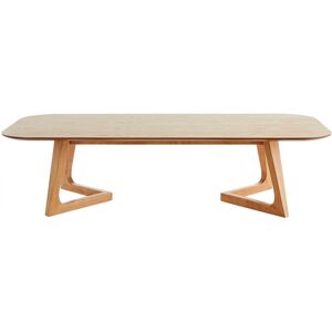 Chaleureuse et moderne, JUKE est une table basse que l'on aime pour son sens du style propre à elle. D'apparence simple, la table basse JUKE dévoile un piétement unique très graphique. Si son plateau nervuré en panneaux de fibres de bois placage frêne nous laisse penser que JUKE est une table basse scandinave classique, ce piétement joliment taillé nous prouve le contraire ! À la forme unique, les pieds en hévéa massif donnent un vrai twist à l'ensemble et signent la silhouette singulière de cette table basse rectangulaire.Avec son bois blond, cette belle pièce de mobilier saura se fondre avec aisance dans n'importe quel intérieur. Ses dimensions généreuses conviendront parfaitement aux grands séjours (L150 x P68 x H38 cm). Pour un intérieur aussi cosy que trendy, on accompagne cette grande table basse en bois d'un canapé épuré, d'un pouf effet laine bouclée, et d'un fauteuil design branché !Livrée prête à monter.