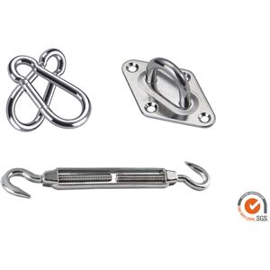 Nous vous garantissons toute une gamme d'accessoire de qualité supérieure complètement adapté à une utilisation maritime. Découvrez notre gamme d'accessoires pour voiles d'ombrage en acier inoxydable (INOX 316), extrêmement solide et résiste à la corrosion. Grâce à eux, vous profitez de votre voile sans aucun soucis. Ensemble fixation inox pour voiles d'ombrage triangulaires comprennent :3 x Pontet sur platine Losange en INOX A4 - 8cm x 5cm x 8mm6 x Mousqueton de sécurité en INOX A4 - 8cm x 4cm x 8mm3 x Tendeur croc-croc en INOX A4 - M8 Caractéristique : Matières et finitions de qualité supérieure Acier inoxydable de haute qualité (INOX A4 316) Adapté à une utilisation maritime Contrôle qualité SGS Dimension : Tendeur croc-croc en INOX A4 - M8 Pontet sur platine Losange en INOX A4 Mousqueton de sécurité en INOX A4