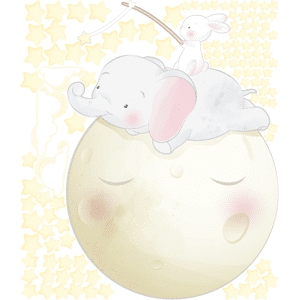 Des stickers enfants pour votre déco ! Avec les stickers muraux enfants et ce Sticker éléphant et lapin dans les étoiles + 60 étoiles, vous vous approprierez enfin votre intérieur ! Dimensions des stickers enfants: Ce sticker se compose du éléphant et lapin sur un nuage avec les étoiles pendantes e