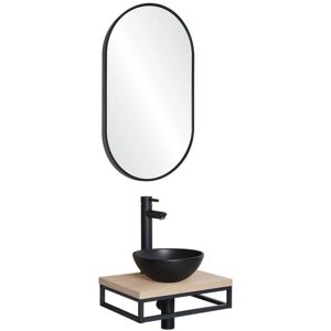 En fonction des disponibilités des produits dans nos différents entrepôts nous pouvons être amenés à expédier ce lot en 2 expéditions distinctes.Points forts du produit:Espace au sol libéré Gain de place Mob-In vous propose le meuble lave-main SOHO de 45 cm et sa structure métallique noire qui sont la réponse idéale à votre manque de place ! Le porte-serviettes côté, ainsi que la pose suspendue de ce meuble allègent votre salle d'eau. Sa fabrication en PPM (Panneaux de Particules Mélaminé) de haute qualité lui assure une résistance à l'usure. Ce lave-main est également composé d'une vasque à poser noire mat fabriquée en céramique et simple d'entretien.Le robinet noir mat GRIFO mitigeur eau chaude / eau froide est équipé d'un aérateur/brise-jet en ABS et d'une cartouche en céramique. Il est fourni avec des flexibles 3/8".La toute nouvelle collection SOHO, esthétique et pratique, donnera un coup de boost à votre espace lave-main ! Proposée en 8 combinaisons, vous y trouverez votre bonheur. Si vous aimez la délicatesse d'un plan fin ou la prestance d'un plan épais, elle deviendra votre alliée du quotidien. Alors n'hésitez plus et découvrez nos ensembles! Informations:Contenu du colis: plan fin + porte-serviettes côté + vasque + robinet Bonde et siphon non inclus Meuble livré à monter soi-mêmeMatière: PPM (Panneau de Particules Mélaminé)Tous nos lave-mains équipés d'une vasque disposent d'un trou de robinetterie (diamètre 35 mm). Dimensions: Meuble: Largeur: 45cm Hauteur: 6,5cm Profondeur: 31cmVasque: Hauteur: 10cm Diamètre: 26cmRobinet: Largeur: 4,9cm Hauteur: 29,7cm Profondeur: 14,5cm.