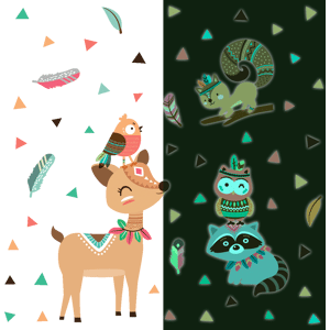 Des stickers phosphorescents animaux pour votre déco ! Avec les stickers phosphorescents muraux animaux multicolore et ce Stickers phosphorescents animaux indiens des bois, vous vous approprierez enfin votre intérieur ! Dimensions du sticker phosphorescents : Ce sticker phosphorescent se compose de