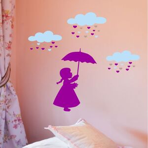 Ces stickers Petite fille sous la pluie des cœurs trouveront une place idéale sur le mur de votre chambre. Très rapide et facile à poser. Pas d'outil ni de colle nécessaire. Décollez simplement votre autocollant de son support et collez-le sur n'importe quelle surface lisse. S'enlève sans laisser d