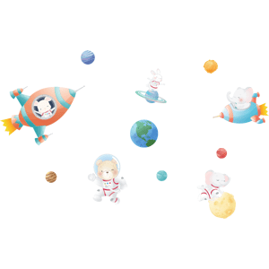 Des stickers animaux pour votre déco ! Avec les stickers muraux animaux multicolore et ce Stickers animaux astronautes dans l'espace, vous vous approprierez enfin votre intérieur ! Dimensions des stickers animaux : Ce sticker déco chambre enfant se compose de : 1 sticker fusée avec le lapin, 1 stic