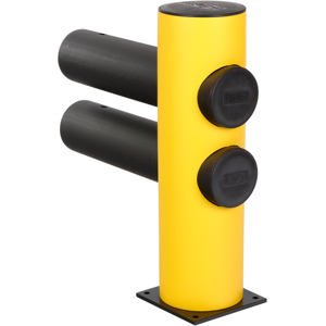 Barrière de circulation pour rayonnage testée TÜV. Équipement de sécurité utilisé pour protéger les véhicules et les installations industrielles contre les dommages causés par des impacts. Ce type de rail est généralement constitué de matériaux résistants tels que le caoutchouc ou le polyuréthane...