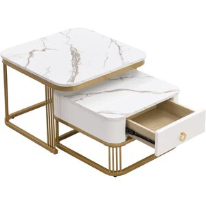 Table basse moderne blanche effet marbre, éclairage LED, élément en verre et 2 tiroirs Ajoutez une touche d'élégance à votre salon avec cette table basse blanche moderne. Avec des dimensions de 100x50x35 cm, la table a la taille parfaite pour être à la fois fonctionnelle et élégante. Le plateau de table à l'aspect marbre élégant donne à votre pièce un caractère luxueux, tandis que l'élément en verre au milieu détend visuellement la table et offre de l'espace pour la décoration. L'éclairage LED intégré crée une atmosphère atmosphérique et met habilement en valeur votre intérieur.La table basse dispose de deux tiroirs pratiques qui offrent un espace de rangement supplémentaire pour les télécommandes, les livres ou d'autres objets. Avec une capacité de charge maximale de 20 kg, la table convient à une variété d'utilisations, depuis les éléments décoratifs jusqu'à l'utilisation comme surface de rangement. Les lignes claires et le design moderne en font un meuble polyvalent qui s'intègre parfaitement dans n'importe quel intérieur. Cette table basse allie esthétique et fonctionnalité et attirera tous les regards dans votre maison. DESIGN ÉLÉGANT : Table basse effet marbre blanc qui offre un look luxueux et moderne.AVEC ÉCLAIRAGE LED : Les lumières LED intégrées créent une ambiance atmosphérique dans votre salon.ÉLÉMENT EN VERRE : Le détail central en verre donne de la légèreté à la table et offre de l'espace pour les décorations.ESPACE DE RANGEMENT PRATIQUE : Deux tiroirs offrent suffisamment d'espace pour ranger soigneusement vos objets.ROBUSTE ET STABLE : Peut supporter un poids allant jusqu'à 20 kg - idéal pour un usage quotidien ou pour la décoration.DIMENSIONS COMPACTES : Avec ses 100x50x35 cm, la table s'intègre dans différents espaces de vie sans dominer.ENTRETIEN FACILE : Les surfaces lisses et faciles à nettoyer garantissent une brillance durable.Caractéristiques :Matériel : MDFDimensions du produit :Hauteur : 35 cmLargeur : 50 cmProfondeur : 100 cm Dimensions du colis 1 colis :113,28*59,94*16,76 cmPoids net/brut 26,68/29,68 kgGarantie :2 ans (voir politique de garantie) Remarque :Le produit sera envoyé depuis dépôt en Allemagne, la livraison prendra environ 7-10 jours ouvrés pour recevoir. Veuillez mesurer votre espace et la taille avant d'acheter. Merci pour votre compréhension!