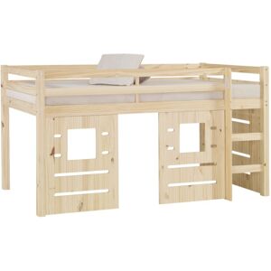 Description : Faites le bonheur de votre enfant avec le Lit mi-hauteur Alma. Il apporte une touche de décoration très sympa grâce à son style cabane. Ainsi, créez un espace jeux, rangement ou lecture sous le lit sans encombrer sa chambre. Synonyme de Gain de place, le Lit mi-hauteur Alma est idéal pour aménager une chambre d'enfant. Robuste, il accompagnera votre enfant de longues années. Développez l'imagination de votre enfant avec le lit mi-hauteur Alma. Caractéristiques : Composition structure : 100% Pin massif Finition : Vernis blanc ou brut naturel Sommier 15 lattes bois massif inclus Charge maximale supportée 90 kg Moyen d'accès : échelle 2 marches positionnable à droite ou à gauche Conforme aux normes de sécurité EN 747-1 & 2 Ne convient pas aux enfants de moins de 6 ans Fixation murale recommandée* Option Panneaux cabane intégrés : Set 2 panneaux fixes avec fenêtre et 1 Panneau latéral fixe Matelas Haute Densité 20 kg/m3 de 13 cm inclu. À monter soi-même Livraison en rez-de-chaussée du Lundi au Vendredi, de 9H00 à 16H00. Données techniques : Long. 2080 x larg. 1030 x haut. 1120 mm 4 colis - Poids total 38,3 kg