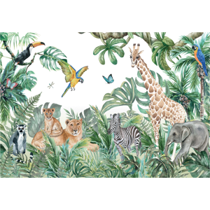 Papier peint panoramique intissé et préencollé jungle ! Avec ce papier peint jungle Papier peint panoramique jungle préencollé grand safari H 250 x L 360 cm, vous pourrez enfin décorer l'intérieur de votre appartement ou maison dans un style tropical, avec jungle, palmiers et animaux exotiques ! Ap