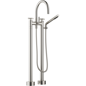 Dornbracht Tara. mélangeur de bain à deux trous 25943882-33 Projection 220 mm bec pivotant 180° jet rond enrichi en air jet normal : match1 Douchette à main avec système anti-calcaire Baignoire / douche à bascule rotative Hauteur totale 920 mm Hauteur des colonnes montantes 628 mm Hauteur à l'aérateur 765 mm Rosaces poussoirs Ø 90 mm Pas 150 mm Flexible de douche en métal 1250 mm avec protection anti-torsion intégrée support de douche pivotant sur le pied droit Débit maxi 22 l/min à 3 bar de pression d'écoulement Débit de douche à main max 6 8 l/min à sécurité intrinsèque contre les refoulements