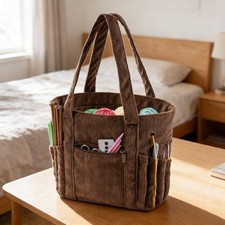 Sac fourre-tout en velours côtelé pour femme, sac à main polyvalent, grande capacité, multi-poches, usage quotidien décontracté, fermeture à glissière, doublure en polyester.