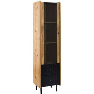 Buffet vitrine haut effet bois et tiroirs noirs avec éclairage LED jaune 180x44x40cm SCREKTALS Cette élégante armoire haute combine le grain du bois naturel avec un design noir, créant un meuble élégant et fonctionnel pour n'importe quelle pièce. Avec une hauteur de 180 cm, une longueur de 44 cm et une largeur de 40 cm, il est idéal pour les espaces compacts mais offre un espace de rangement suffisant. La vitrine avec éclairage LED jaune ajoute chaleur et élégance à votre maison. Deux tiroirs noirs en bas offrent un espace de rangement supplémentaire caché, idéal pour les petits objets.L'armoire repose sur des pieds robustes en métal noir mat, qui soulignent l'aspect moderne et garantissent en même temps stabilité et longévité. La combinaison du grain du bois et des accents noirs rend cette armoire haute polyvalente et adaptée à différents styles d'intérieur, du moderne au industriel. Design élégant : le grain du bois et les accents noirs créent un look moderne et intemporel, adapté à tout style d'intérieur.Grand espace de rangement : deux tiroirs noirs et une porte de placard avec porte vitrée offrent beaucoup d'espace de rangement.Éclairage LED jaune : la porte vitrée est éclairée par une lumière LED jaune, idéale pour exposer des objets décoratifs, des livres et des objets de collection.Stable et durable : les pieds robustes en métal noir mat garantissent la stabilité et complètent le design moderne.Polyvalent : avec une taille de 180x44x40 cm, l'armoire est parfaite pour les petites pièces et offre des options de rangement et d'affichage élégantes pour les salons, les chambres ou les salles à manger. Caractéristiques :Matériel : MDFDimensions du produit :Hauteur : 180 cmLargeur : 40 cmProfondeur : 44 cm Dimensions du colis 2 colis :54 * 45 * 18 cm180 * 49 * 11 cmPoids net/brut 38/40,9 kgGarantie :2 ans (voir politique de garantie) Remarque :-Le produit sera envoyé depuis dépôt en Allemagne, la livraison prendra environ 7-10 jours ouvrés pour recevoir. -Veuillez mesurer votre espace et la taille avant d'acheter. Merci pour votre compréhension!-Le produit sera envoyé depuis l'Allemagne en 2 colis, parfois les colis arrivent à des dates différentes, veuillez-vous assurer d'avoir reçu 2 colis avant de l'assembler !-Ce produit est conditionné en deux boîtes. Vous pouvez le recevoir à des jours différents.