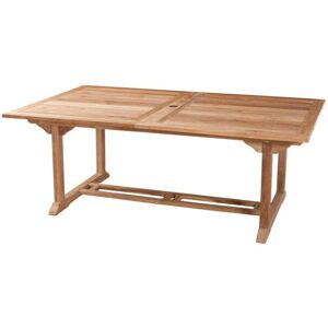 Table de jardin en bois 8/10 personnes. Dimensions 180/240 x 100 x 75 cm. Article en teck brut. Table de jardin rectangulaire. Cette grande table de jardin vous permettra d'accueillir famille et amis, elle est aussi extensible ce qui lui permet d'être très fonctionnelle. Le teck est un bois précieux et imputrescible très utilisé pour la fabrication de meubles de jardin car il est extrêmement résistant aux agressions climatiques les plus rudes et constantes (humidité). Nos meubles de jardin sont en teck massif de première qualité, ce qui exclut principalement les défauts et offre une finition qualitative. Les plantations Le bois utilisé dans la fabrication de nos meubles de jardin provient uniquement de forêts de replantation provenant de l'île de Java. Ces forêts sont gérées par l'organisme d'état Perum Perhutani, qui détermine une saisonnalité et un quota de coupe afin d'assurer la durabilité de la ressource. L'entretien Les meubles en teck peuvent rester à l'extérieur sans aucun traitement particulier. Après quelques mois voire quelques années, le bois prendra une teinte grisée. Pour conserver la couleur initiale de votre meuble ou pour retirer une tache, poncez légèrement ce dernier avec un papier de verre fin. Vous pouvez également appliquer une huile de teck en début de saison, il sera ainsi protégé et de couleur miel. Il est fortement conseillé d'abriter ce mobilier et de le protéger du gel pendant la période hivernale afin qu'il ne s'abîme pas.
